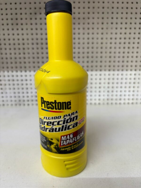 Líquido Para Dirección Hidráulica + Tapa Fugas Prestone es una fórmula 2 en 1. Esta diseñado para mantener los sistemas de direccion hidraulica trabajando suavemente mientras ayuda detener fugas. Esta formulado cientificamente para detener o reducir la perdidad de fluido causada por fugas en los empaques. La formula 2 en 1 contiene un acondicionador para revitalizar los empaques resecos, cuarteados y endurecidos.